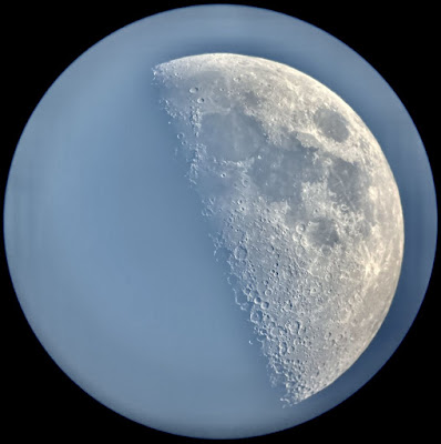 Ook overdag is het leuk om met de telescoop naar de maan te kijken. Net iets minder gedetailleerd, maar de sfeer blijft buitenaards mooi.